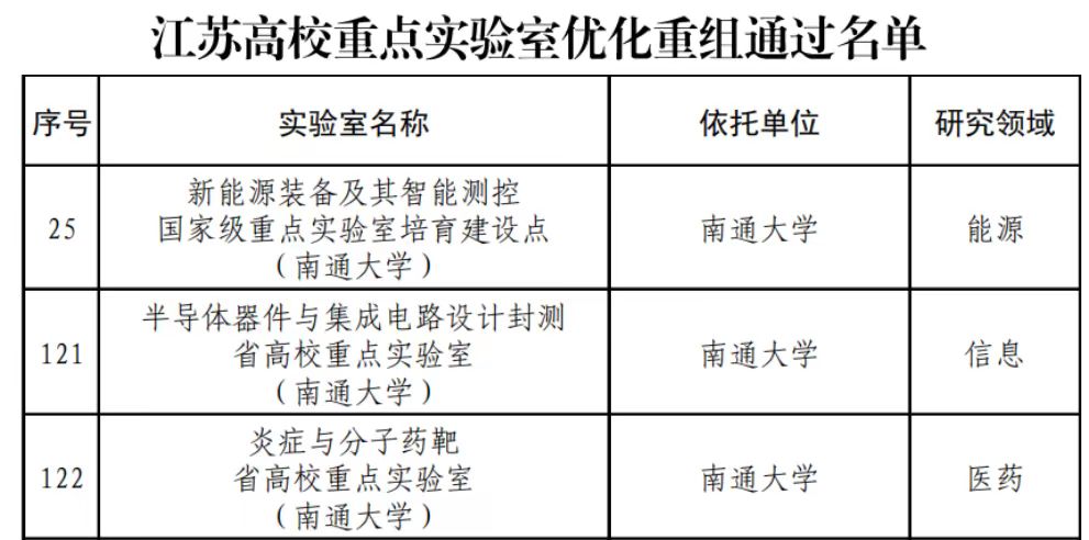 1月底,江苏省教育厅公布省高校重点实验室优化重组通过名单。黄瓜视频 新能源装备及其智能测控、半导体器件与集成电路设计封测、炎症与分子药靶等三个省高校重点实验室全部通过评审。