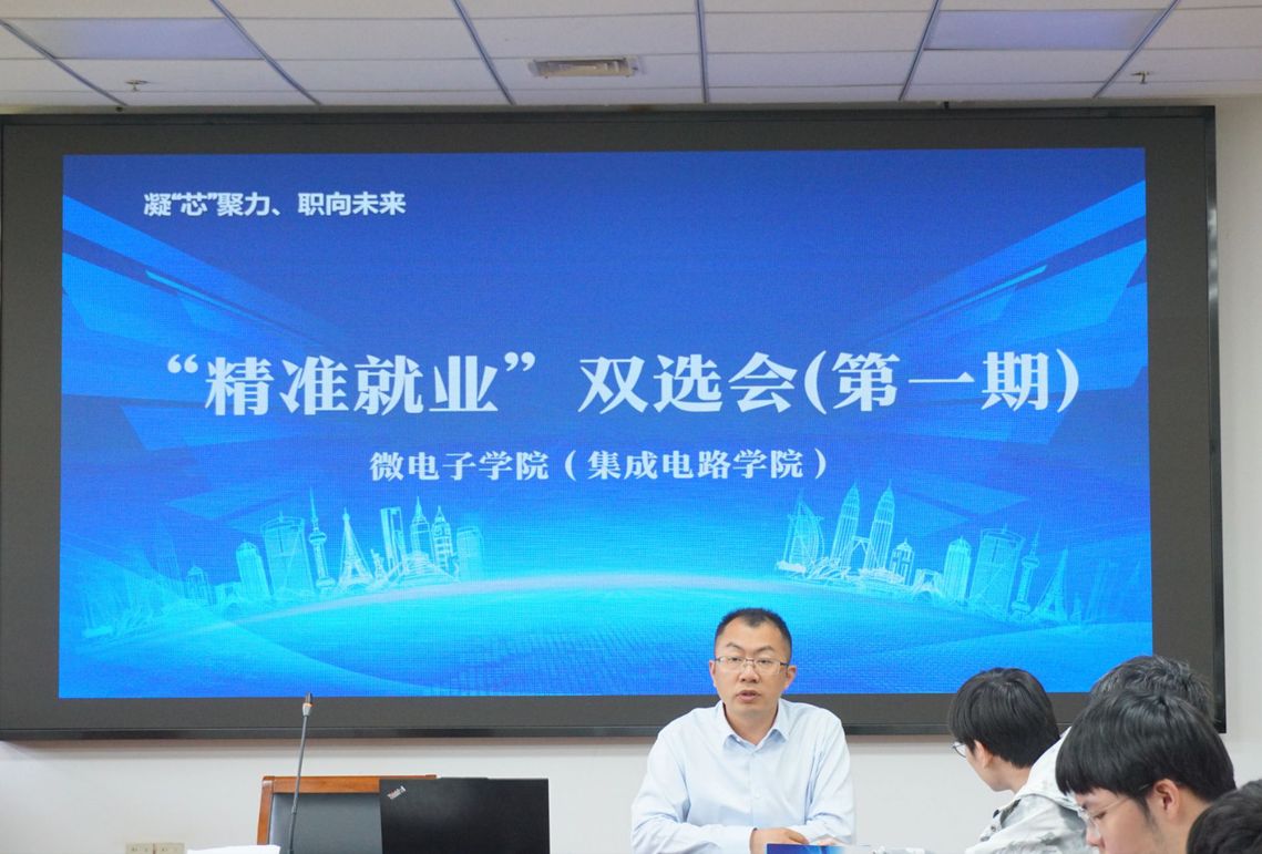 通富微电子股份有限公司人力资源中心部负责人从黄瓜视频、发展前景、招聘需求、培训培养、薪酬待遇等方面向同学们进行详细介绍,同学们就自己所关心的薪资待遇、企业需求、公司发展平台与机会等问题与企业进行了深入的沟通交流。(图文 高浩龙)