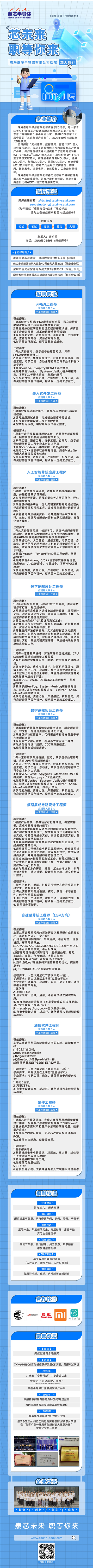 珠海泰芯半导体有限公司招聘信息