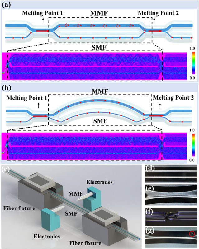 该论文提出了一种基于微双臂马赫–曾德尔干涉仪(MTA-MZI)的全光纤可调谐模式转换器,主要利用简单的电弧放电工艺使单模光纤(SMF)与多模光纤(MMF)耦合,形成厘米级臂长的干涉仪结构,实现了光纤中多个模式的实时转换和调节。该研究通过曲率调节,使得MMF的高阶模式泄漏,导致干涉条纹发生变化,以此实现光纤中传输模式的调节和检测。论文进一步通过熔接“花生状”结构来验证理论的自洽性,为在线全光模式的转换和检测提供了新的解决方案。由于其独特的结构和便捷的操作性,这一模式转换器能够通过简单的机械调节实现模式的动态转换,在光通信、光纤传感等领域具有重要应用潜力。此外,论文系统分析了模式转换的机制,并指出通过改进熔接工艺,该转换器的插入损耗有望进一步降低,从而提升其实用性和经济性。