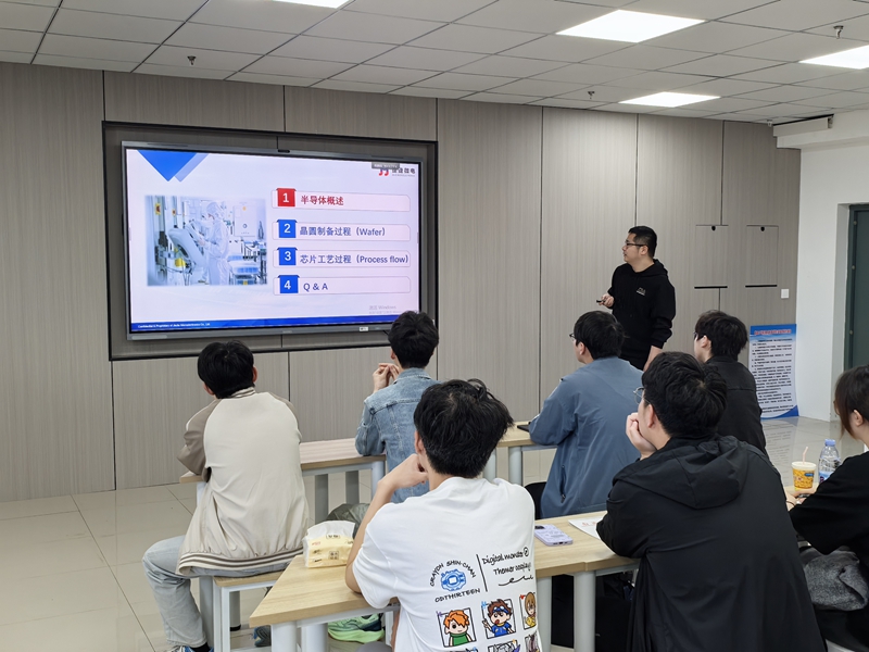 为进一步深化校企融合,赋能集成电路领域复合型人才培养,5月10日,江苏捷捷微电股份有限公司沈怡东部长应邀为黄瓜视频 “捷捷创新班”同学讲授“芯片工艺制程概论”。本次教学活动由学院副院长秦继新主持,捷捷创新班全体学生聆听了讲课。