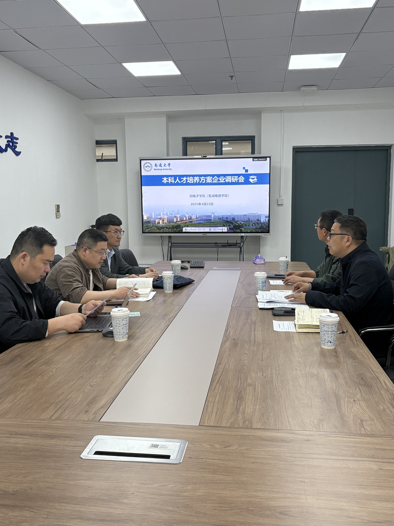 为深化产教融合,优化本科人才培养方案,4月22日,学院召开人才培养方案企业调研会。捷捷半导体副总经理钱清友、张超,江苏捷捷微电子股份有限公司人力资源总监刘尧伟参加调研。活动由学院副院长秦继新主持。